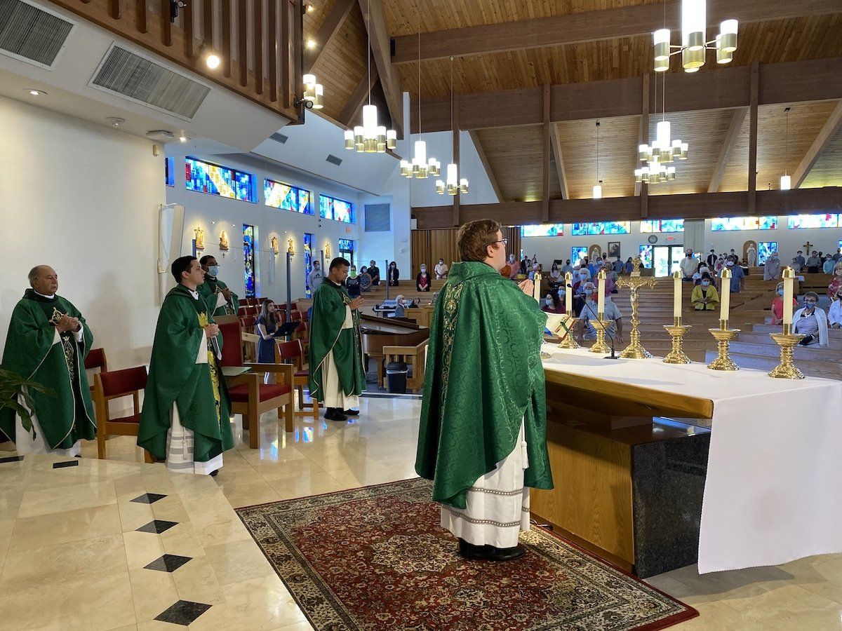 Their ordination ceremony, like their "yes" to priesthood, was a bit delayed. But Fathers Andrew Tomonto and Ryan Saunders both agree that it ultimately happened in God's good time. Their ordination ceremony took place June 27, 2020, more than a month after the usual date, with reduced attendance and no post-ceremony first blessings due to the COVID-19 precautions. In his homily, Archbishop Thomas Wenski noted that the archdiocese usually ordains its priests in May, on the Saturday of Mother's Day weekend, as "a kind of gift to the mothers of our priests." Since this year the ceremony took place the weekend after Father's Day, he said, it could be considered "a belated Father's Day gift to this local Church of Miami." Local being a key word this year, as both of the newly ordained are South Florida-born and raised, products of Catholic elementary and secondary schools. Both also felt God's call early but postponed entering the seminary until graduating from college — and, in Father Saunders' case, pursuing a parallel interest in politics. Here are brief profiles of Miami's newest priests. FATHER ANDREW TOMONTO "It's in his blood," Elsa Tomonto said of her eldest son's vocation to the priesthood. Archbishop Thomas Wenski lays hands on Deacon Andrew Tomonto, ordaining him "a priest forever." Archbishop Thomas Wenski ordained two South Florida natives to the priesthood for the Archdiocese of Miami June 27, 2020. The ceremony had been postponed from May due to the COVID-19 outbreak, and was still punctuated by mask-wearing and social distancing among the limited number of both faithful and priests in attendance. Archbishop Thomas Wenski lays hands on Deacon Andrew Tomonto, ordaining him "a priest forever." Archbishop Thomas Wenski ordained two South Florida natives to the priesthood for the Archdiocese of Miami June 27, 2020. The ceremony had been postponed from May due to the COVID-19 outbreak, and was still punctuated by mask-wearing and social distancing among the limited number of both faithful and priests in attendance. Andrew's grandfather, the late Bob Tomonto, was a permanent deacon at the family's home parish of St. Louis in Pinecrest. He and his wife, Irene Tomonto, joined the Christian Family Movement in the 1960s. At St. Louis, they created the Covenant Experience, a parish-based enrichment program for married couples. "I've always had very, very good priests in my life," said Father Tomonto, who was born in Mercy Hospital. But Elsa Tomonto didn't necessarily want her son to become a priest. "She's a Colombian mom who wants to be a Colombian grandmother," he explained. His becoming a priest would cut her chance at that by one-third, as Andrew is the eldest of three sons. "He remembers when he was 12, he told me he wanted to be a priest and I started crying," Tomonto said moments before her son's ordination. "Now we're thrilled." Father Tomonto said he first vocalized the thought of becoming a priest in seventh grade, as a student at St. Louis Covenant School. He then moved to Marist-run Christopher Columbus High School in Miami, where a couple of archdiocesan priests — both retired now — proved deeply influential: Father Liam Quinn, who taught him theology in ninth grade, and Father Arthur Dennison, who taught him in 11th grade. But Father Tomonto didn't realize it at the time. At 14, he thought "you couldn't be happy without a family." Looking back later, he realized how Father Quinn changed that perspective. "This guy is happy. There's a joy in him, and it's infectious," Father Tomonto recalled. "It helped bring down a wall in my mind, a barrier to discerning." But he moved on, to major in business at the University of Miami. "This is where the vocation really showed itself," he said. "College was where I had that adult moment when you take ownership of your own faith." He began "praying more profoundly." During his sophomore year, he attended a vocation awareness weekend at St. John Vianney College Seminary in Miami. He got involved in UM's Catholic campus ministry. Still, he put off entering the seminary. "I had a good scholarship and I loved college," he said. He entered the seminary immediately after graduating. "It was just like a puzzle piece fitting," he said. "I went into the seminary and I loved it. I knew that's where I was supposed to be." As for not having a family: "I haven't found any life that's really that easy," he said. "Each (vocation) has its own challenges and its own joy." His mother thinks he'll make a good priest. "He's a very comforting person. He's very calm," she said. "I think he's going to be a wonderful person to minister to the people of God." FATHER RYAN SAUNDERS Father Saunders remembers the question the late Auxiliary Bishop Agustin Roman would ask him whenever he visited St. Mary Cathedral: "When, Ryan, when?" At the time, Saunders was working fulltime as master of ceremonies at the cathedral and associate director of the archdiocesan Office of Worship. Msgr. Terence Hogan, then rector of the cathedral, had hired him for the job in 2005, while he was completing his studies in political science at Barry University in Miami Shores. Archbishop Thomas Wenski lays hands on Deacon Ryan Saunders, ordaining him "a priest forever." Archbishop Thomas Wenski ordained two South Florida natives to the priesthood for the Archdiocese of Miami June 27, 2020. The ceremony had been postponed from May due to the COVID-19 outbreak, and was still punctuated by mask-wearing and social distancing among the limited number of both faithful and priests in attendance. Photographer: ANA RODRIGUEZ-SOTO | FC Archbishop Thomas Wenski lays hands on Deacon Ryan Saunders, ordaining him "a priest forever." Archbishop Thomas Wenski ordained two South Florida natives to the priesthood for the Archdiocese of Miami June 27, 2020. The ceremony had been postponed from May due to the COVID-19 outbreak, and was still punctuated by mask-wearing and social distancing among the limi